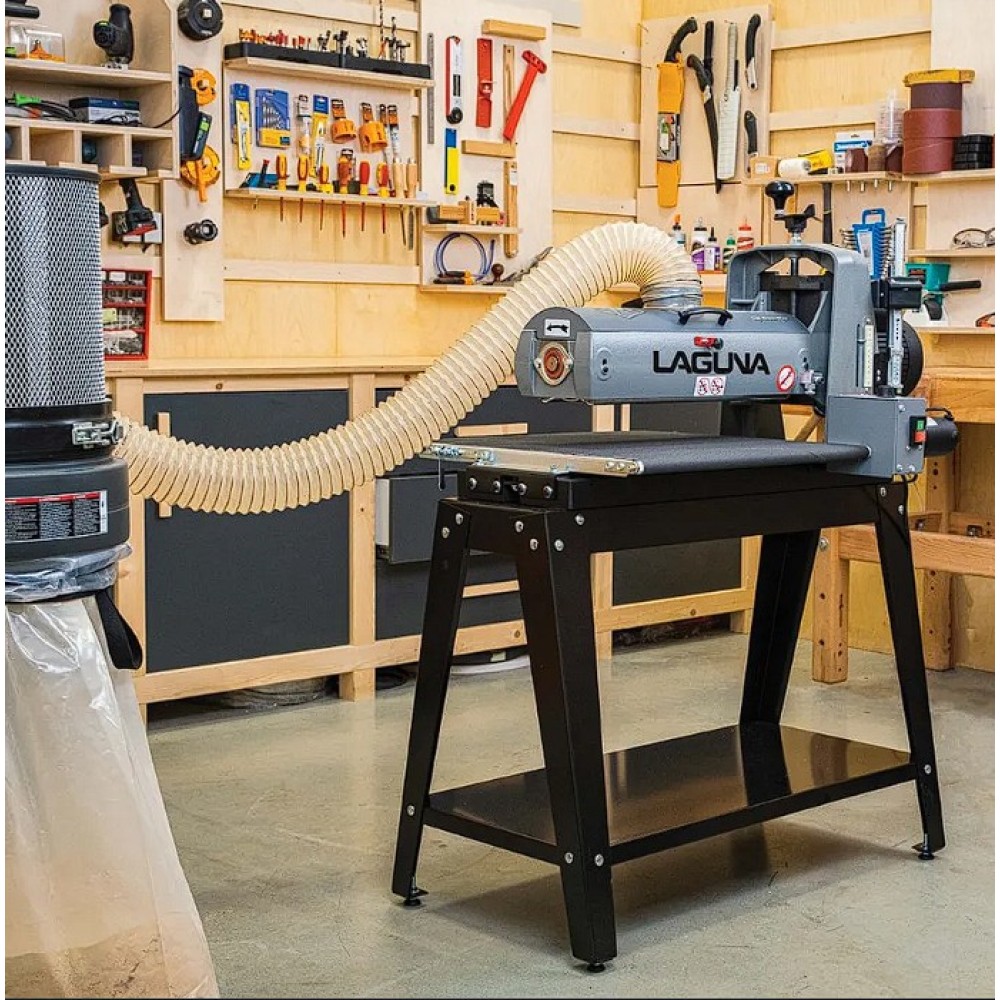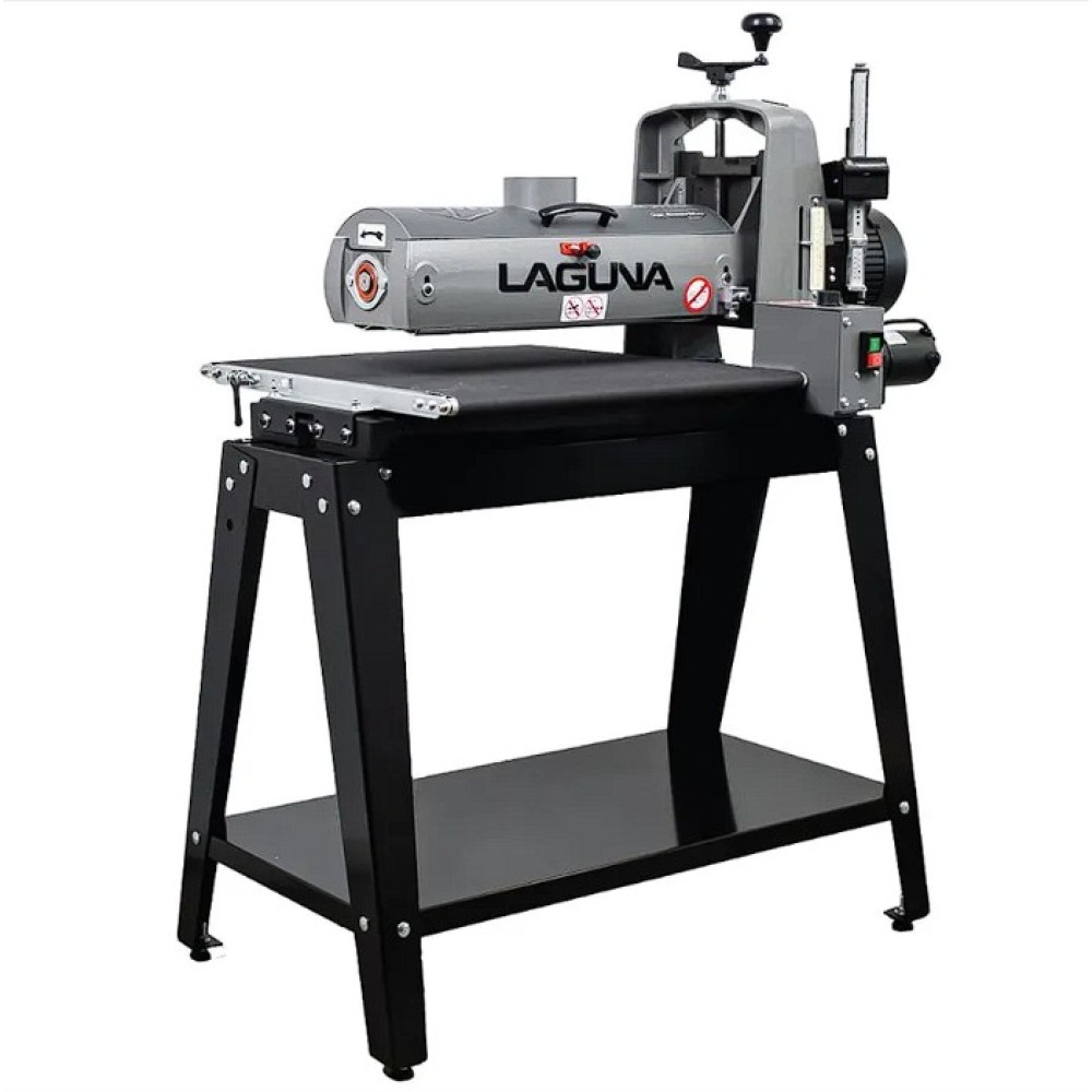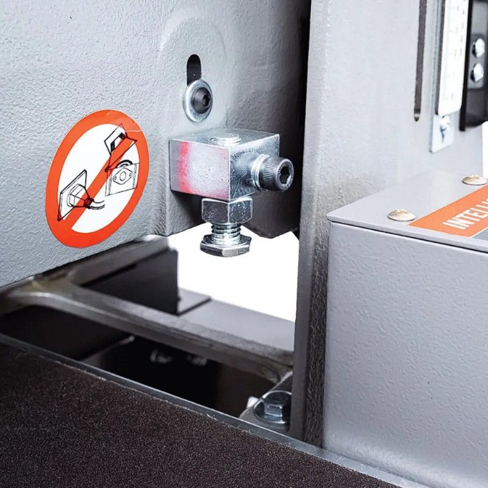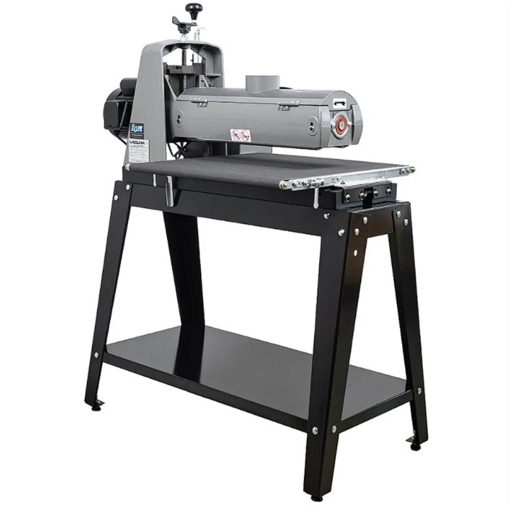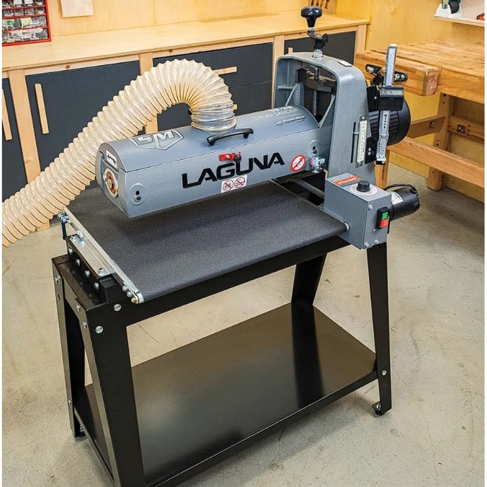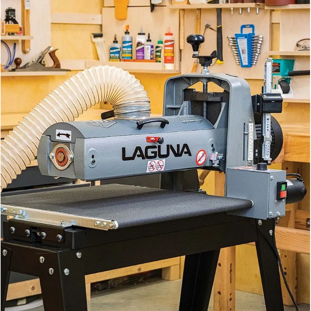 Az IGM Laguna SuperMax hengeres csiszológépet asztalosmesterek segítségével tervezték igényes műhelyek számára, zökkenőmentes működésre, keskeny vagy széles munkadarabok pontos csiszolására és gyors beállítására. Olyan elemeket talál rajta, amelyeket a szakemberek már hosszú ideje kerestek a famegmunkáló piacon. Az egyik ilyen előny például a csiszolási magasság egyszerű beállítása. A kar alatti nyomócsapágy és a felette lévő anya megakadályozza, hogy a henger csiszolás közben elmozduljon. A magasságállító mechanizmusnak nincs holtjátéka vagy billenése, így könnyebb és simább a magasság beállítása. A pontos anyagleválasztást beépített digitális kijelző segítségével lehet ellenőrizni, amely tizedmilliméter pontossággal mutatja a henger magasságát, ezáltal lehetővé téve a pontos érték kiszámítását. A teljes munkadarab szélességén belüli pontosságot nemcsak a merev öntöttvas szerkezet garantálja, hanem a henger és a szállítószalag közötti pontos párhuzamos beállítás is. A csiszológép fel van szerelve egy karral, amellyel be lehet állítani a gépet a széles munkadarabok csiszolásához. Ez a kar kissé megemeli az adagolóasztalt, így elkerülhető a hornyok kialakulása az alkatrésznek a hengeren túlnyúló részén. A vivőszalag önálló motorja a csiszológép hátoldalán található, így a szalag inkább húzva van, nem pedig tolva. A csúszásgátlós abrazív vivőszalagot úgy tervezték, hogy a 482 mm-nél szélesebb munkadarabokat is megfelelően támassza alá (két csiszolási művelet során). Az adagolószalag négy acél keresztmetszettel megerősített, tökéletesen sík acélvezetője 0,25 mm-nél kisebb eltéréssel garantálja a simaságot a csiszológép teljes szélességében. Az Intellisand technológia automatikusan beállítja az adagolási sebességet, ha túl nagy az anyagleválasztás. Az Intellisand csökkenti az adagolási sebességet, hogy megelőzze a motor túlterhelését, és elkerülje a munkadarab megégését, a szálak kitépését vagy más sérülést. A durva felületű adagolószalag szorosan tartja a nyers fát, és lehetővé teszi a nagyon rövid vagy vékony darabok csiszolását is. A csiszológép szabadalmaztatott csiszolószalag-rögzítő rendszerrel rendelkezik, amely megakadályozza a csiszolószalag meglazulását vagy átfedését. A feszesség beállítása így nagyon egyszerű és gyors – semmi speciális szerszám nem szükséges! Egy másik intelligens tulajdonság a speciálisan kialakított hengerfedél, amely hatékonyabbá teszi a csiszolópor elszívását. A burkolat úgy van kialakítva, hogy a tökéletes elszívás érdekében illeszkedjen a henger formájához. Az önhűtő henger megakadályozza a túlmelegedést, és meghosszabbítja a csiszolóanyag élettartamát. A szabályozható nyomógörgők megakadályozzák az eltérő anyagleválasztást az egymást követő csiszolási folyamatok során. A hengeres csiszológép az anyag felületének megmunkálására szolgál. Egyetlen csiszolási művelet során (60-as csiszolóanyaggal) nem szabad túllépni a 0,4 mm-es anyagleválasztást.