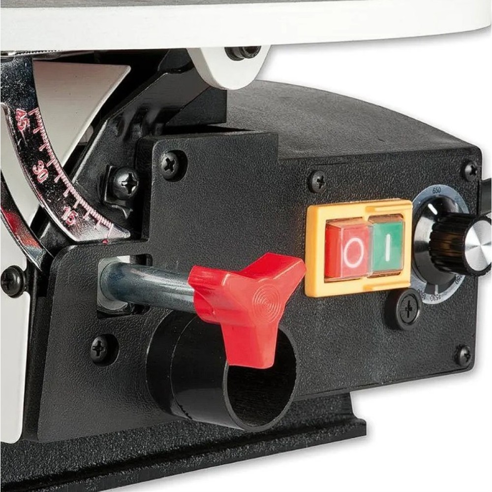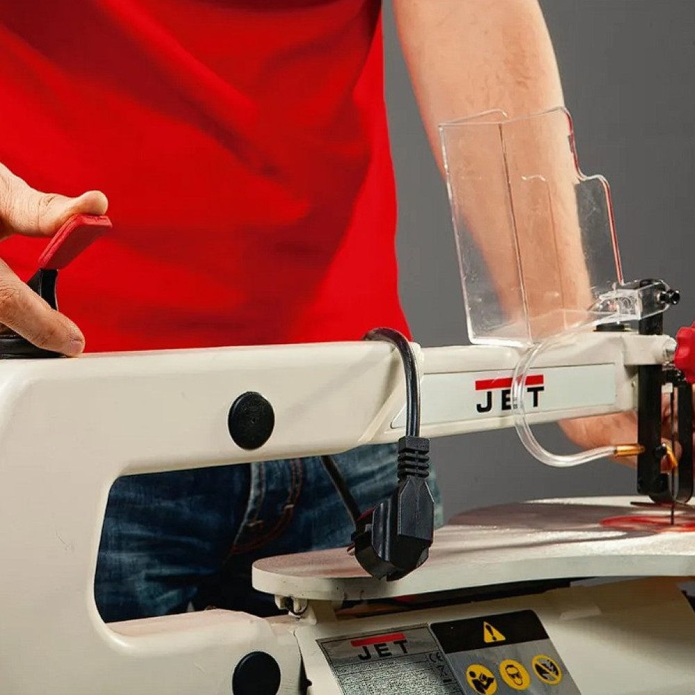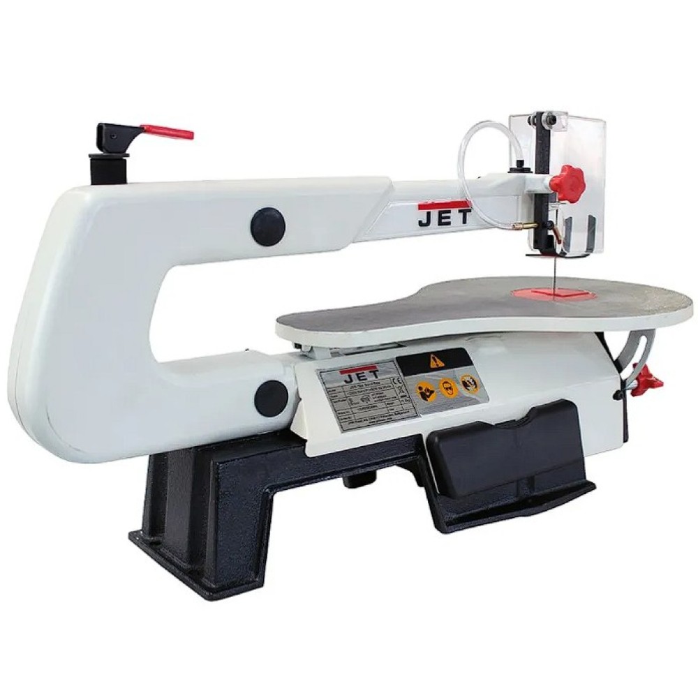 Az elektromos JET asztali dekopírfűrész erős kommutátor DC motorral van felszerelve folytonos oszcilláció szabályozással (550-1.600 / perc). Ezért egyszerű vele vágni anyagok széles skáláját akár 50 mm vastagságig. Elszívó csőnyílás átmérője 35 mm. Nagy asztal (410 x 254 mm) vágás 510 mm maximális magasságával és dönthető akár 45° szög alatti vágásra. A fűrészgép fűrészlapok ékes rögzítésével van szállítva. A lazító irányító tárcsa a gyors és egyszerű cserét biztosítja. A ventilátor a vágás helyét tisztán és jól láthatón tartja. A nehéz öntvény alapzatnak köszönhetően a gép stabil és minimális vibrációkkal rendelkezik.