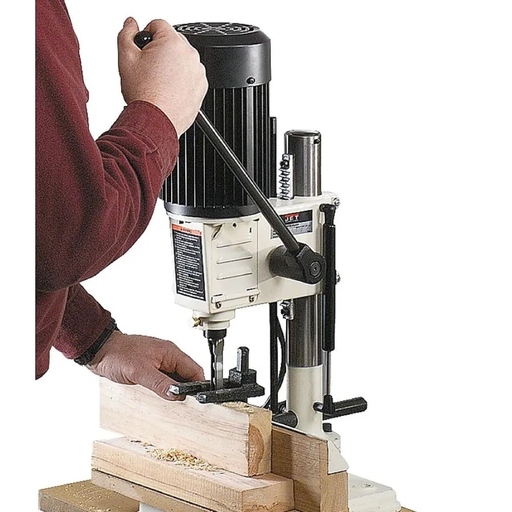 A JBM-5 asztali fúró-vésőgép alkalmas szögletes furatok készítésére professzionális géphez hasonló pontossággal és megbízhatósággal. A korlátozott vésési mélység és a maximális véső átmérő ellenére is a gép kiválóan segít a szögletes furatok készítésében. Az asztali fúró-vésőgép kompakt, hordozható és a műhelybe vagy helyszíni szerelésnél is könnyes használható. A beépített mechanizmusok megkönnyítik a munkát. A gázos lengéscsillapító kiegyensúlyozza a motort, fogaskerék mechanizmus hosszú karral a könnyed vésésért. Függőleges munkadarab leszorító. egyszerűen és precízen befogható fúrószár. A rövid szárú fúró hosszabbítására megvásárolható hárompofás tokmány opcionális tartozék.