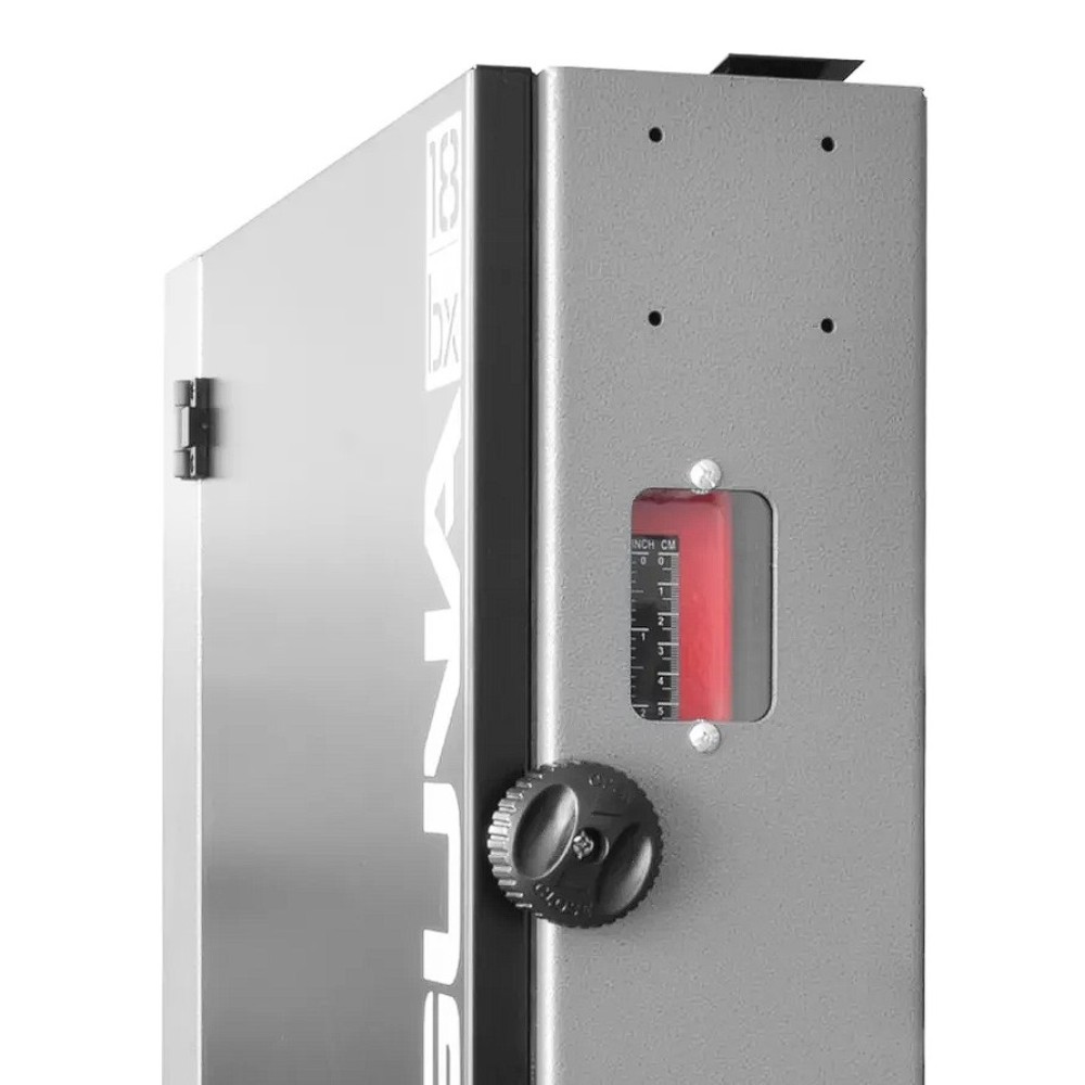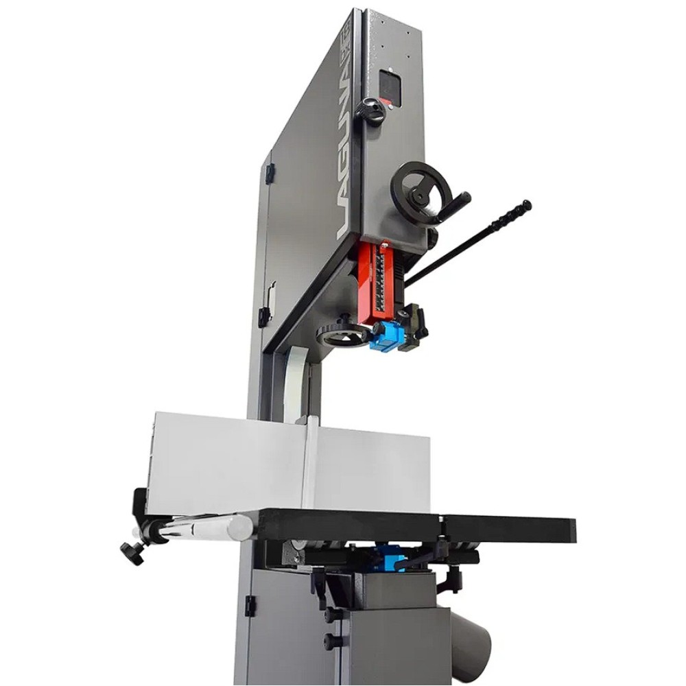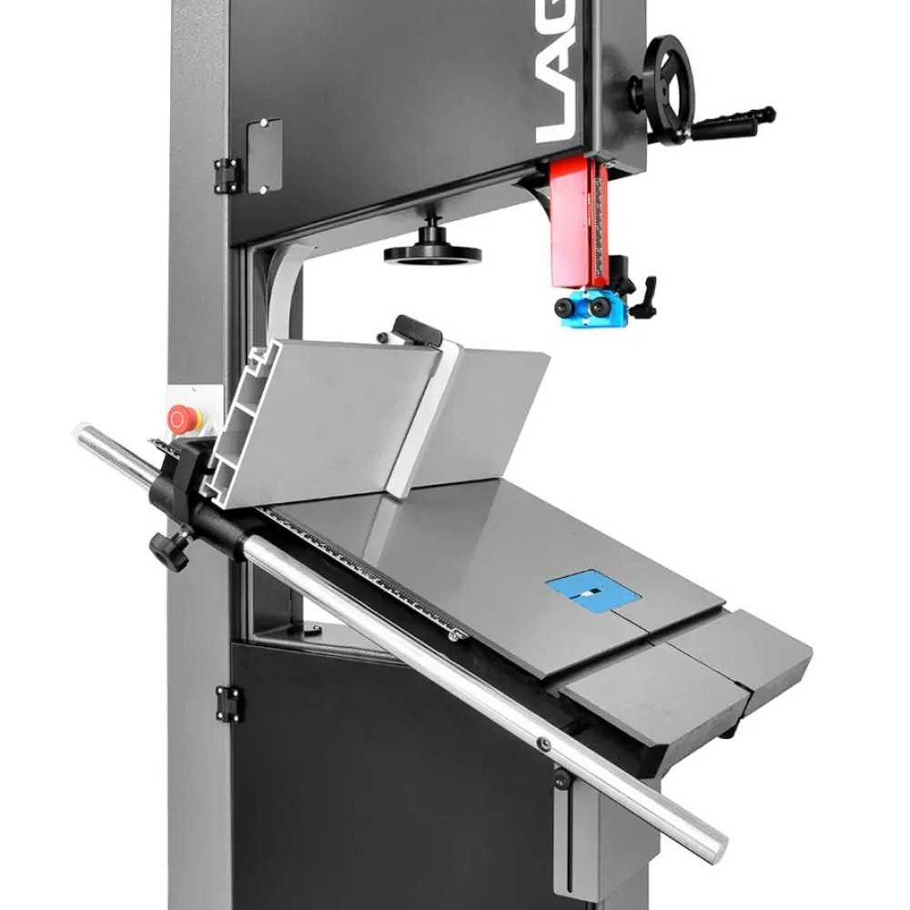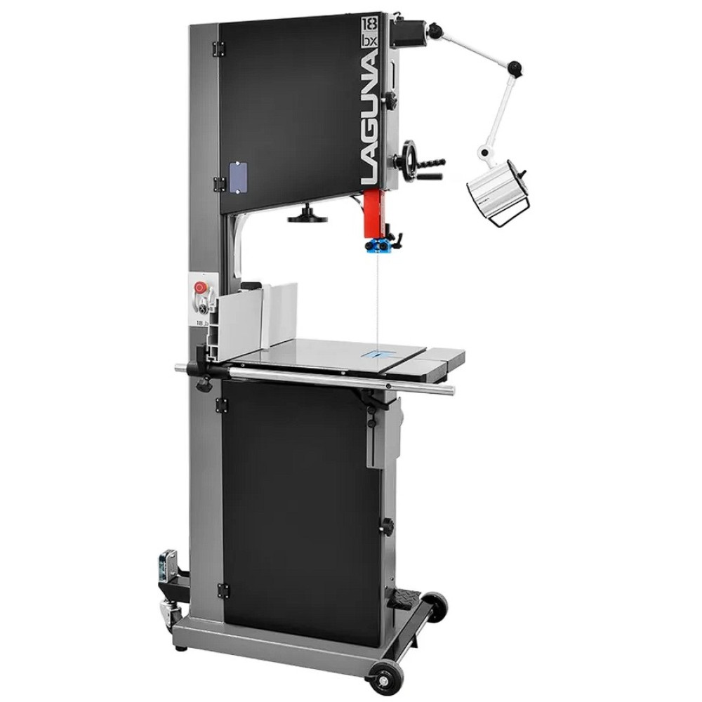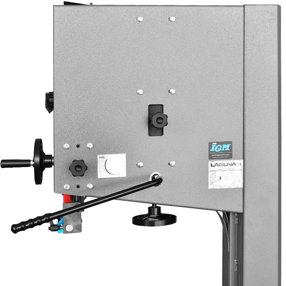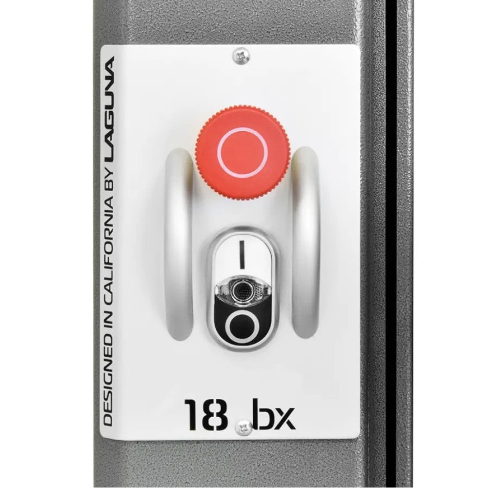 Laguna 18BX szalagfűrész nehéz, stabil vázzal és nagy teljesítményű, 2,2 kW-os aszinkronmotorral rendelkezik. A csiszolt öntöttvas 660 x 508 mm méretű munkaasztal a nagyobb darabok vágásánál is stabilitást biztosít. A munkaasztalt -7°-tól +45°-ig fok között lehet megdönteni. Masszív magas hosszanti vonalzó reteszelhető ütközővel könnyű beállítani és két helyzetben (vízszintes és függőleges) lehet pozicionálni. A tömör öntött kerekek kiegyensúlyozottak és poliuretán szalaggal vannak felszerelve a kerék kerülete körül. A szalag úgy van tervezve, hogy a magasabb hőfokot is kibírja és az élettartama hosszabb mint a hagyományos gumi keréknek. A szalag felső vezetőjének csigás hajtóműve maximális stabilitást biztosít a legmagassabb vágási magasságnál is. A fűrész azonnali leállításához az alsó kerék tárcsafékkel van felszerelve, amely a pedál megnyomásával aktiválható. A fűrészgép tartós kerámia fűrészlapvezetőkkel van felszerelve az asztal felett és alatt. Ezek a vezetők ideális vágás minőséget biztosítanak és meghosszabbítják a szalagfűrész élettartamát. A gép felső részén lévő nézőüvegek lehetőséget adnak a szalag megfeszítésének vagy meglazításának ellenőrzését működés közben is. Szintén praktikus elem, a fűrész hátoldalán lévő szalag meglazító kar. Az IGM Laguna 18BX szalagfűrészt elsősorban kifinomult kialakítása különbözteti meg a versenytársaktól, amely akár 410 mm magasságú vágást is lehetővé tesz.