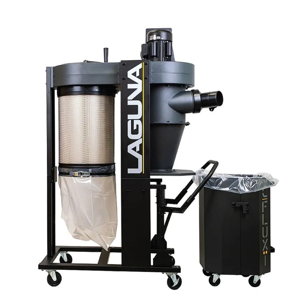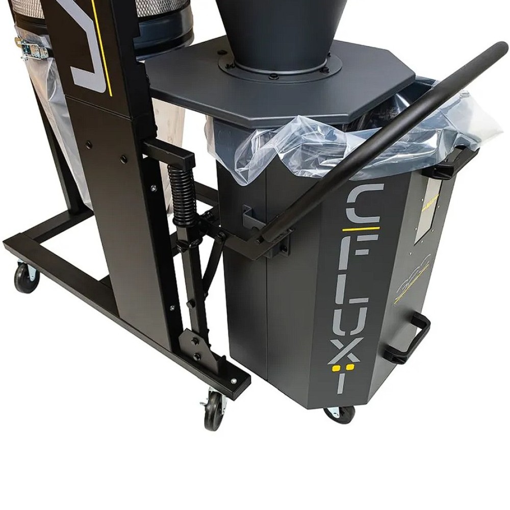 A Cflux 1 ciklonos elszívó hatékony elszívó a kisebb műhelyekbe. A ciklon technológia maximilizálja a levegő áramlását és javítja az elszívás hatékonyságát. Hatékony szűrő kézi tisztítással A satbilan beépített mikrószűrő nem korlátozza a levegő áramlását, ami megnöveli a szűrőrendszer teljes hatékonyságát. A CFlux 1 összehajtogatott szűrővel rendelkezik, amelynek szűrési hatékonysága 99,97% az 1 mikron feletti részecskék esetében. A szűrő belsejében található praktikus forgókaros rendszer megkönnyíti a szétszerelés nélküli tisztítást, és megakadályozza az eltömődést. A szűrő alsó részén egy levehető hulladékgyűjtő zsák van a finom por összegyűjtésére. Ötletes kialakítású hulladéktárolóA hulladéktartály kiürítése nagyon egyszerű. A kitűnő gyorskioldó rendszer biztosítja a hulladéktároló egy mozdulattal történő leoldását az elszívó egységről. Emelje meg a fogantyút, hogy eltávolítsa az edényt az elszívóról. És fordítva, a fogantyú lefelé történő nyomásával a rendszer felemeli az edényt és biztosítja a szükséges vákuumot az elszívóban. A tartály kerekei a levegőben maradnak, és az elszívó kerekeinek feloldása után könnyedén mozgathatja a gépet a műhelyben. A ciklonos technológia A kétfokozatú elszívórendszer nagyobb hatékonyságot nyújt, mint az összehasonlítható egyfokozatú elszívógépek. A nagyobb méretű fűrészpor külön van válaszvja és egyenesen a hulladéktárolóba esik, mielőtt a légáram továbbviszi őket a szűrés második szakaszába. Ez a technológia állandó nagy teljesítményű elszívást biztosít. A gépet részben szétszerelve, saját raklapon, szállítási ládában szállítjuk. Hozzávetőleges összeszerelési idő 4-5 óra (két személyt ajánlunk).
