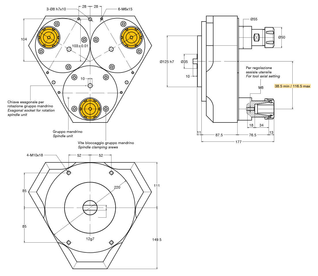 MPA 136P Három orsós fúrófej, körkörös kialakítás